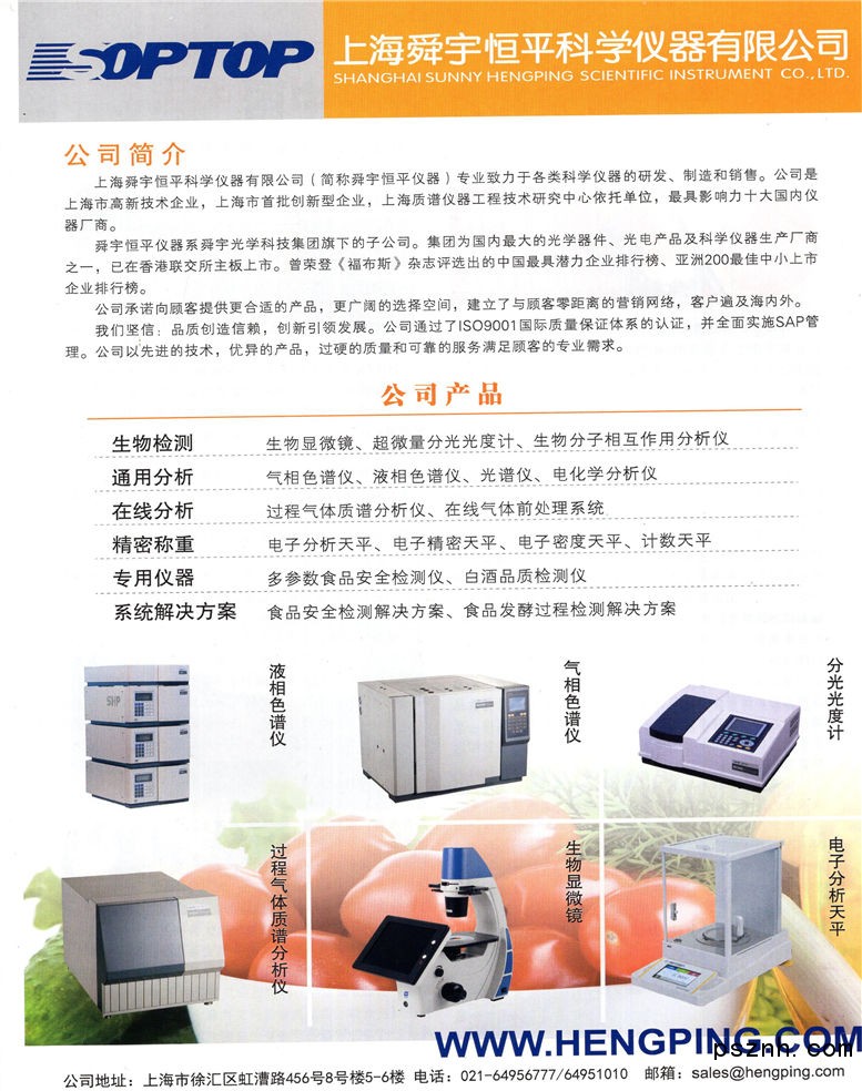 | 公司名稱: | 上海舜宇恒平科學儀器有限公司 | ||