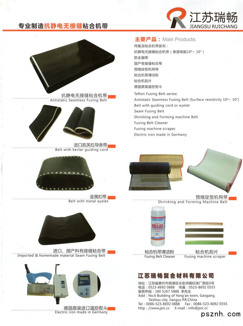 江蘇瑞暢復(fù)合材料有限公司 特氟龍粘合機帶 特氟龍耐高溫防粘布墊 特氟龍網(wǎng)格輸送帶點擊:413 查看原圖![]() ![]() ![]() 地 址:江蘇省泰州市高港區(qū)永安洲鎮(zhèn)標(biāo)準(zhǔn)廠房區(qū)6號