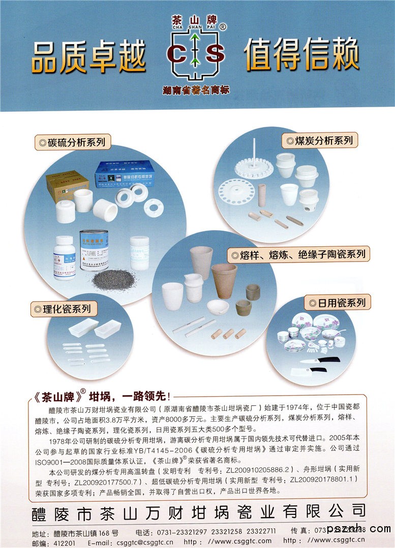 | 經(jīng)營(yíng)范圍: | 日用瓷、炻瓷、工業(yè)瓷、碳硫分析專用坩堝及其它坩堝生產(chǎn)銷售;純鎢、純錫、錫鎢等金屬助熔劑制造銷售 。(依法須經(jīng)批準(zhǔn)的項(xiàng)目,經(jīng)相關(guān)部門批準(zhǔn)后方可開展經(jīng)營(yíng)活動(dòng)) | ||