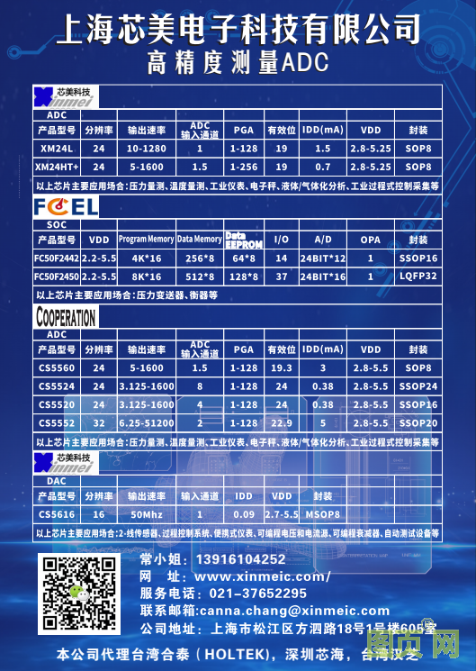 A/D轉(zhuǎn)換芯片|單片機|顯示驅(qū)動芯片|穩(wěn)壓電源芯片|上海芯美電子科技有限公司點擊:571 查看原圖![]() ![]() ![]() 服務(wù)電話