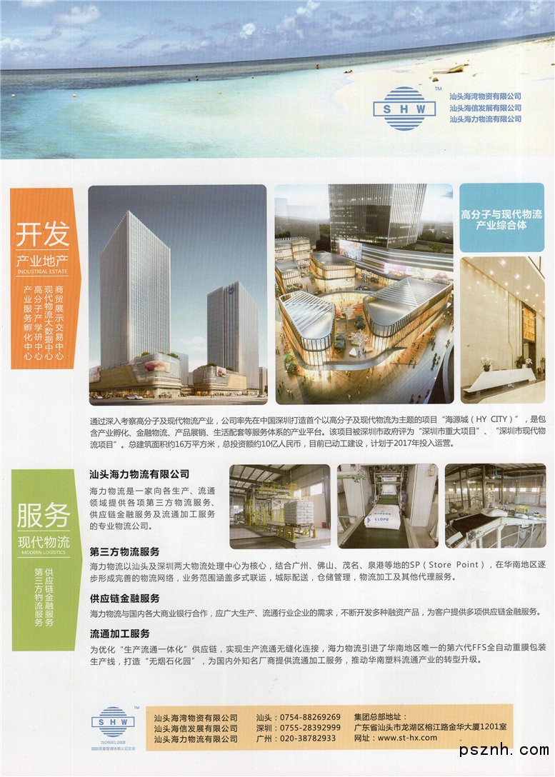 汕頭海信發(fā)展有限公司 塑膠原料商貿 現代物流服務 燃氣供暖工程點擊:919 查看原圖![]() ![]() ![]() 公 司: 總部