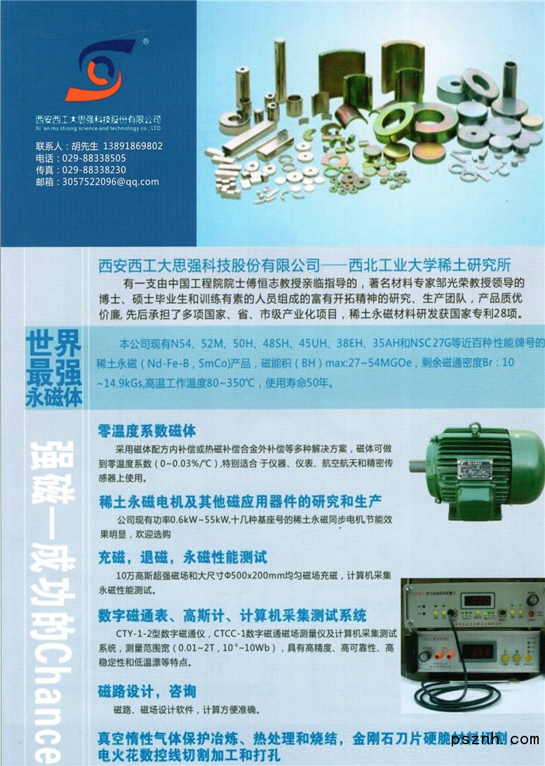 | 經(jīng)營范圍: | 永磁軟磁制品、功能材料及器件、儀器儀表、電機(jī)、化工和相關(guān)的機(jī)械電子設(shè)備的研制開發(fā)、生產(chǎn)、銷售、技術(shù)服務(wù)。 (以上經(jīng)營范圍凡涉及國家有專項專營規(guī)定的從其規(guī)定) | ||