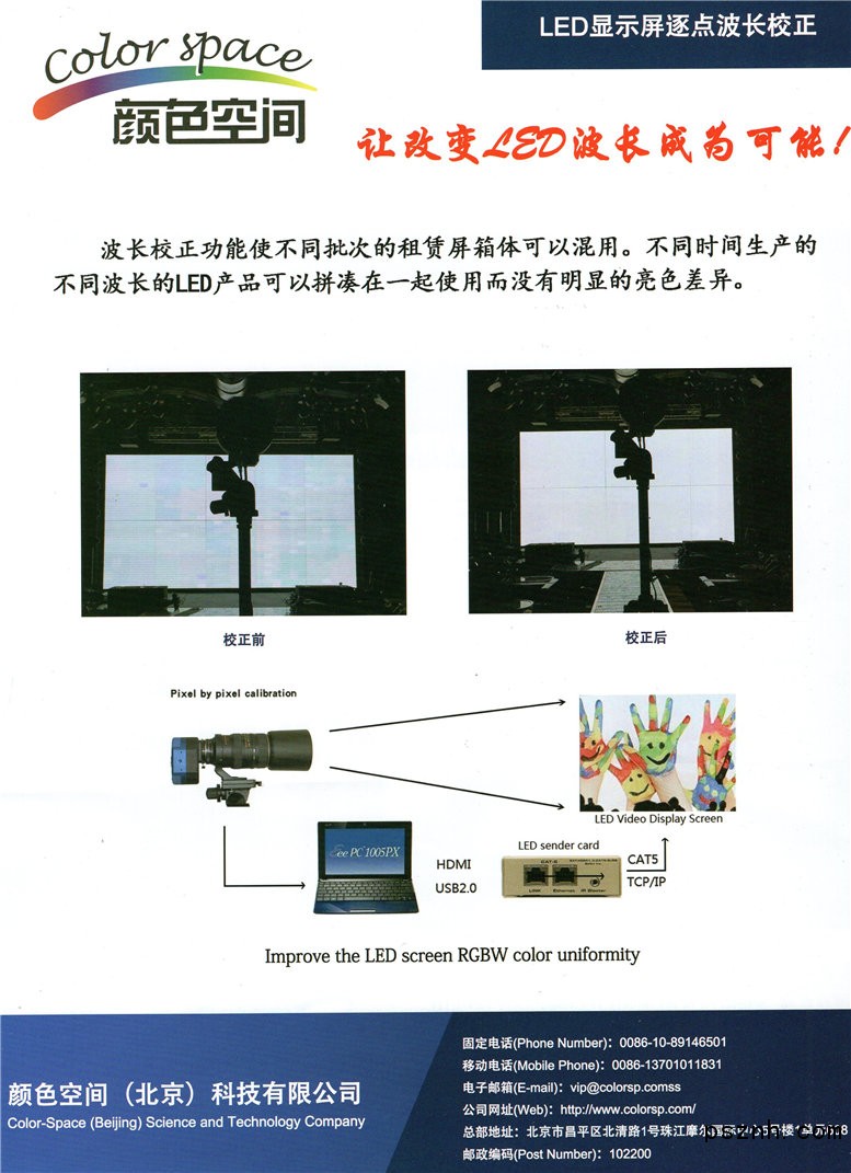顏色空間(北京)科技有限公司 LED顯示屏校正設(shè)備點擊:634 查看原圖![]() ![]() ![]() 顏色空間(北京)科技有限公司