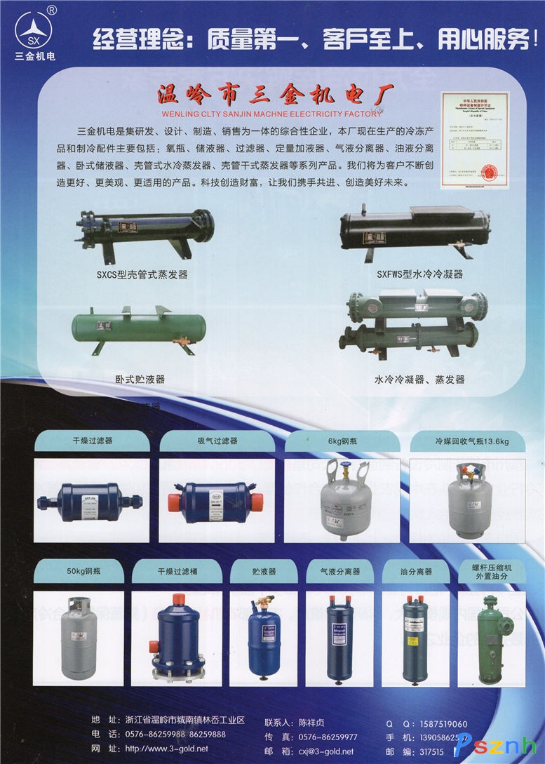 溫嶺市三金機電廠 氧瓶 貯液器 過濾器點擊:516 查看原圖![]() ![]() ![]() 公司電話: 0576-6259988