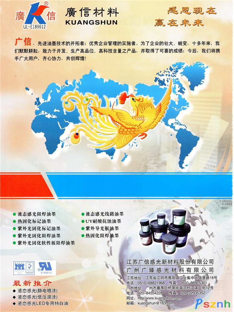 江蘇廣信感光新材料股份有限公司 液態(tài)感光阻焊油墨 PCB油墨點(diǎn)擊:1599 查看原圖![]() ![]() ![]() 中國江蘇省江陰市青陽鎮(zhèn)工業(yè)集中區(qū)華澄路18號