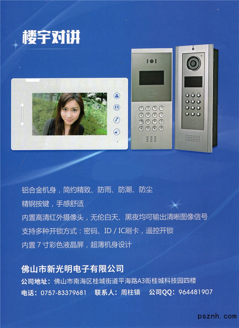 佛山市新光明電子有限公司 樓宇防盜對講系統(tǒng)點擊:409 查看原圖![]() ![]() ![]() 聯(lián)系人: