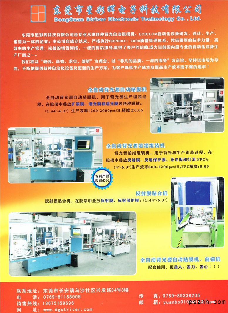 東莞市星彩暉電子科技有限公司 全自動背光源組裝設(shè)備 全自動背光源組裝設(shè)備 全自動背光源組裝設(shè)備 手機貼膠機設(shè)備 前端設(shè)備點擊:435 查看原圖![]() ![]() ![]() 地 址:東莞市長安鎮(zhèn)烏沙社區(qū)興發(fā)路34號3樓