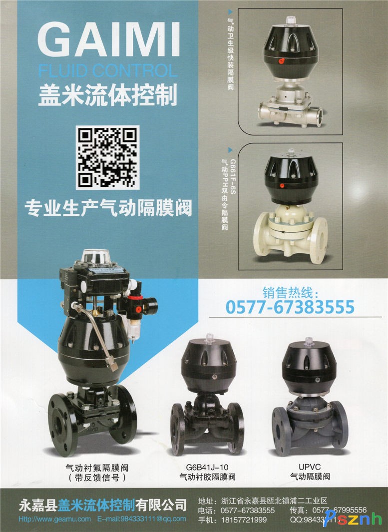 永嘉縣蓋米流體控制有限公司_氣動隔膜閥_氣動球閥_氣動蝶閥_氣動角座閥_襯膠隔膜閥_塑料隔膜閥點擊:783 查看原圖![]() ![]() ![]() 永嘉縣蓋米流體控制有限公司