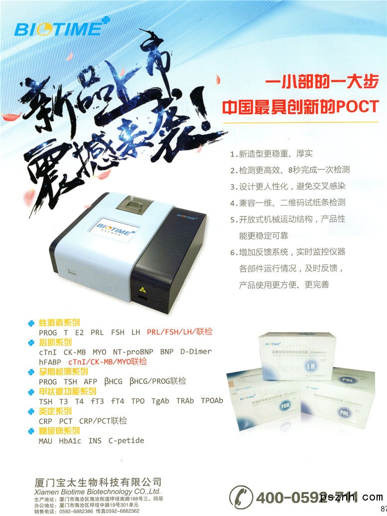 廈門(mén)寶太生物科技有限公司 免疫熒光分析儀_液基細(xì)胞檢測(cè)試劑_熒光免疫診斷試劑點(diǎn)擊:1520 查看原圖![]() ![]() ![]() 電 話:0592-6882386 傳 真:0592-6882362