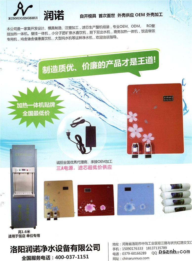 洛陽潤諾凈水設(shè)備有限公司 潤諾系列凈水機(jī) 瑩潤系列凈水機(jī)點(diǎn)擊:1343 查看原圖![]() ![]() ![]() 聯(lián) 系 人:陳先生 電話:18137135789 熱線:18137135789 郵箱:88888888@qq.com 地址:洛陽市中溝工業(yè)區(qū)經(jīng)三路與道北三路交叉口 網(wǎng)址:www..com |