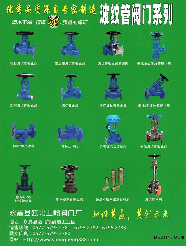 永嘉縣甌北鎮(zhèn)上能閥門(mén)廠 德標(biāo)波紋管截止閥 美標(biāo)波紋管截止閥 Y型波紋管截止閥點(diǎn)擊:888 查看原圖![]() ![]() ![]() 公司名稱(chēng): 永嘉縣甌北鎮(zhèn)上能閥門(mén)廠