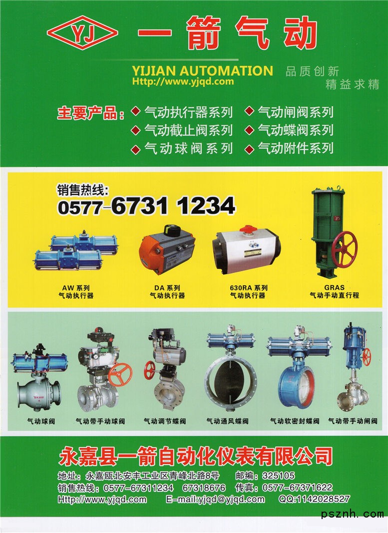 永嘉縣一箭自動化儀表有限公司 執(zhí)行器 氣動執(zhí)行器 氣動閥門點擊:692 查看原圖![]() ![]() ![]() 電話:0577-67318676 67371622 013706694042 郵編:325105