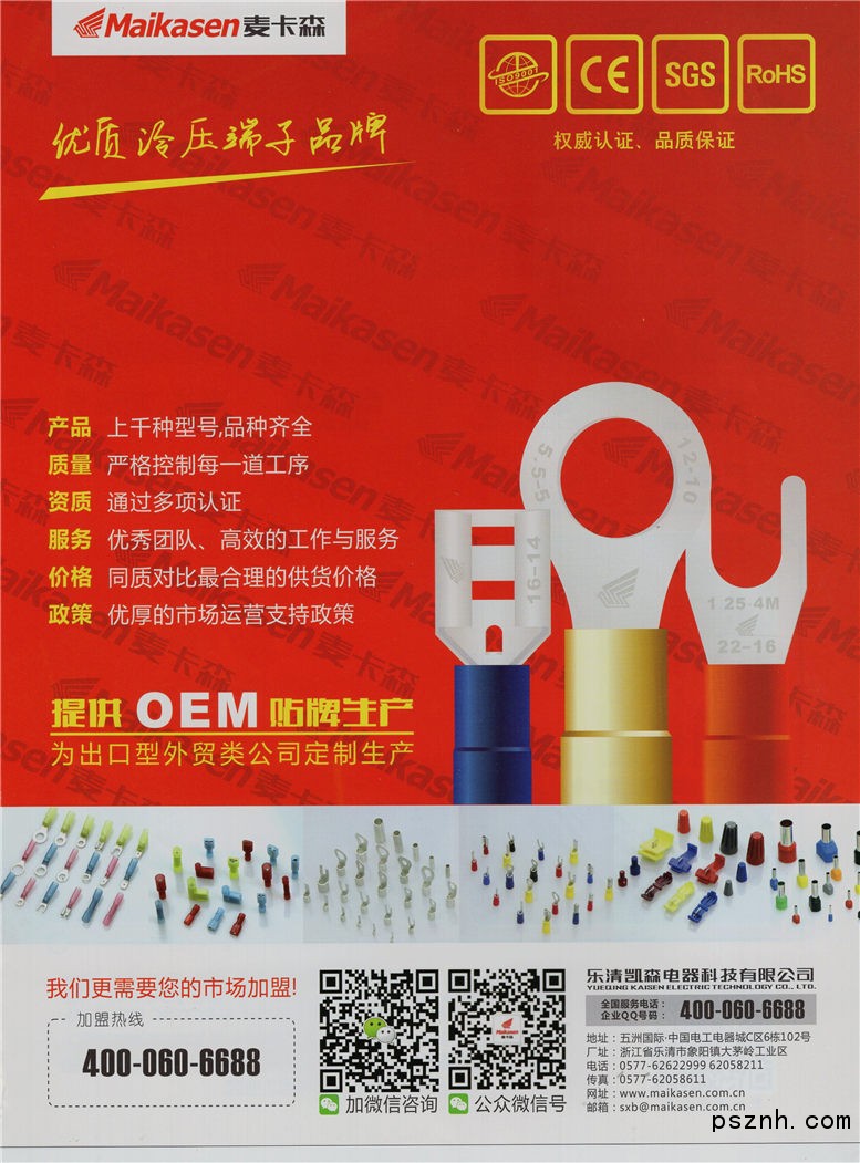 地址:浙江省樂清市象陽鎮(zhèn)大茅嶺工業(yè)區(qū) 電話:0577-62622999 62058211 62058311 Q Q:4000606688 郵編:325600 郵箱:ks@maikasen.com 網(wǎng)址:www.maikasen.com |