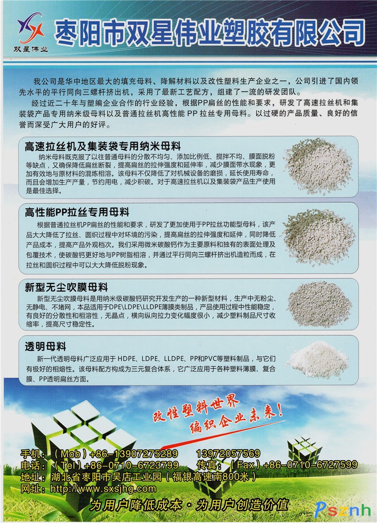 | 公司名稱: | 棗陽市雙星偉業(yè)塑膠有限公司 | ||