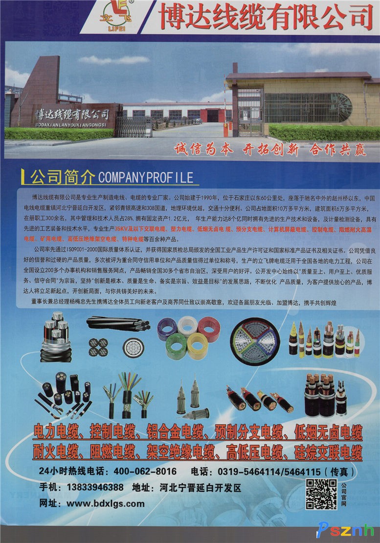 博達(dá)線纜有限公司 交聯(lián)電纜 塑力電纜 低煙無鹵電纜 預(yù)分支電纜 計(jì)算機(jī)屏蔽電纜 控制電纜 阻燃耐火高溫電纜 礦用電纜