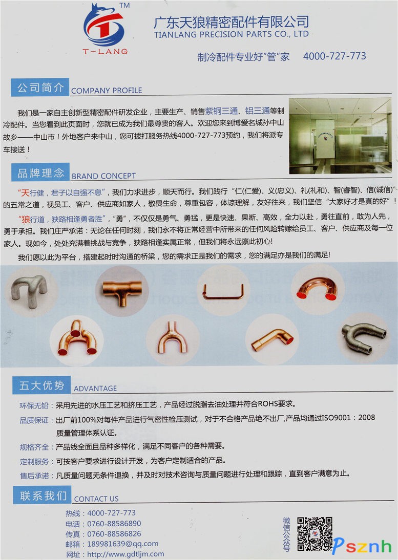 廣東天狼精密配件有限公司 紫銅三通管件 制冷配件 不銹鋼盤管點(diǎn)擊:1786 查看原圖![]() ![]() ![]() 全國服務(wù)熱線:4000-727-773