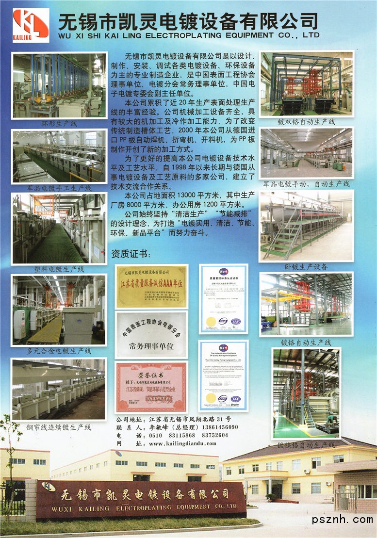 | 公司名稱(chēng): | 無(wú)錫市凱靈電鍍?cè)O(shè)備有限公司 | ||