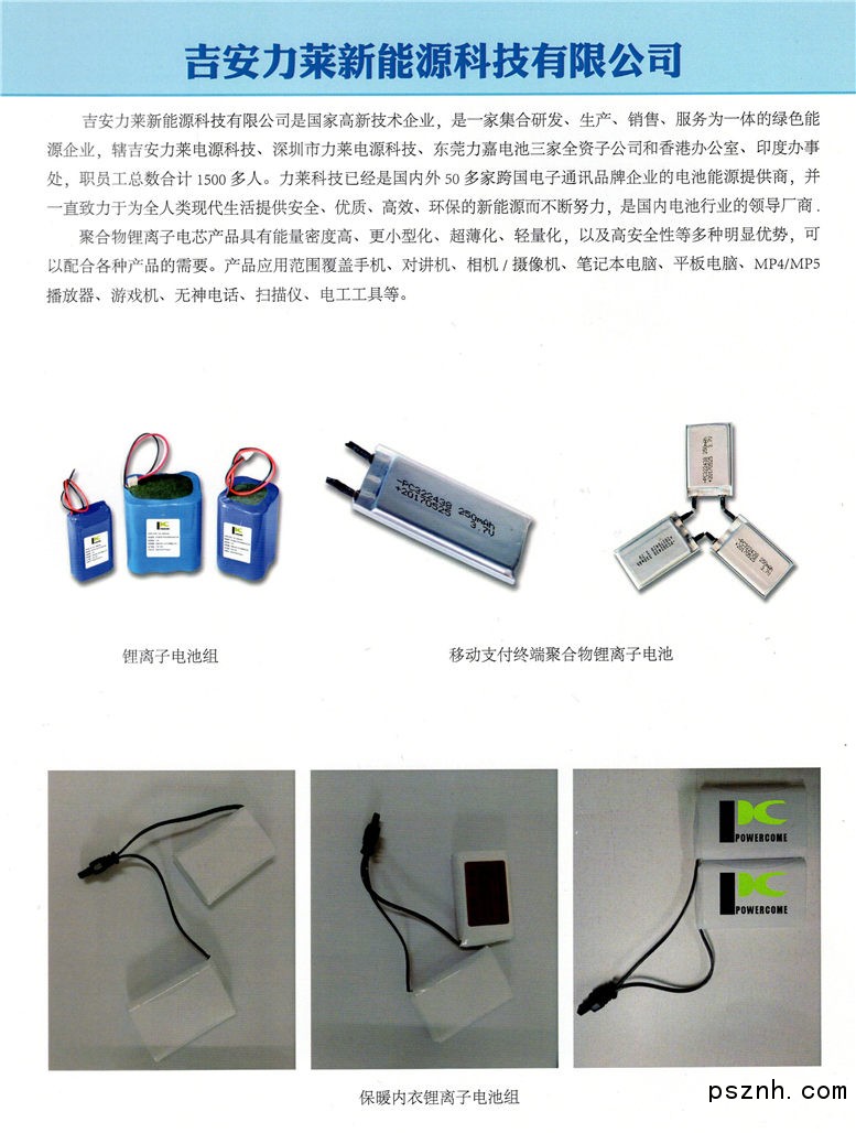 吉安力萊新能源科技有限公司-鋰離子電池_鋰聚合物電池_電池配套產(chǎn)品點擊:1093 查看原圖![]() ![]() ![]() 公司名稱: 吉安力萊新能源科技有限公司