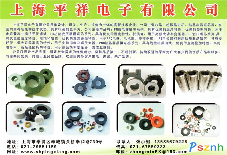 上海平祥電子有限公司_PN高電感磁芯系列_PG切口磁芯系列_PM功率變壓器用磁芯系列點擊:592 查看原圖![]() ![]() ![]() http://www.shpingxiang.com/contact.asp