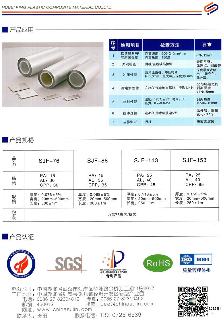 湖北塑金復(fù)合材料有限責(zé)任公司 軟包鋰電池鋁塑膜 鋁塑復(fù)合管用鋁帶 管用單面涂膠鋁帶點(diǎn)擊:929 查看原圖![]() ![]() ![]() 地址:武漢市江岸區(qū)百步亭金橋匯二期11棟2017