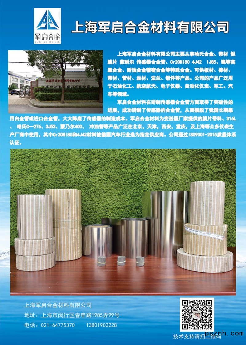 哈氏合金_帶材鉭膜片_傳感器合金管_蒙耐爾_Cr20Ni80 4J42 1J85_ 鎳等高溫合金_耐蝕合金精密合金-上海軍啟合金材料有限公司點擊:6648 查看原圖![]() ![]() ![]() 上海市閔行區(qū)澄建路351號4號樓 上海軍啟