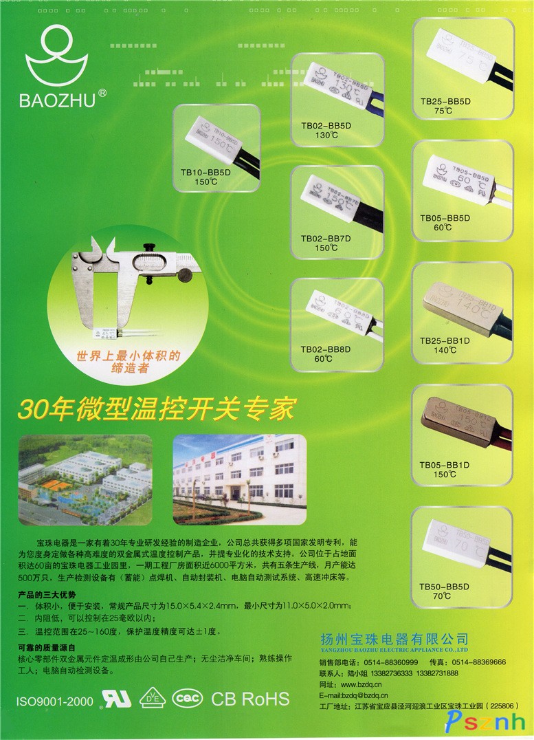 揚(yáng)州寶珠電器有限公司 _熱保護(hù)器_溫控開(kāi)關(guān)_保護(hù)器 延時(shí)復(fù)位熱保護(hù)器 微型熱保護(hù)器 最小溫控器 深圳電池展
