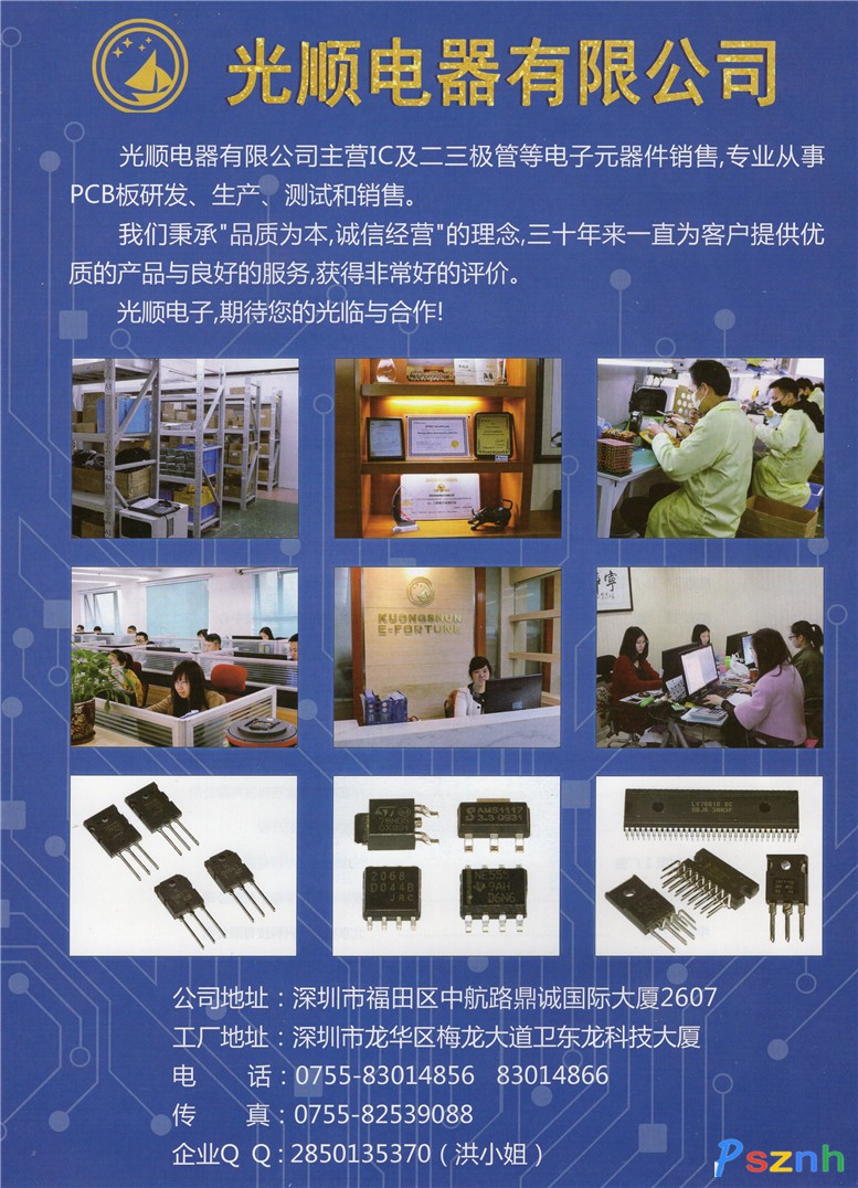 深圳市順發(fā)光電子有限公司 電子元器件 集成電路點(diǎn)擊:1292 查看原圖![]() ![]() ![]() 深圳光順電子有限公司 電子元器件,集成電路