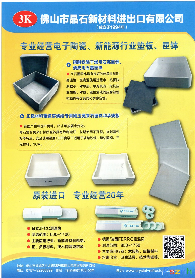 佛山市晶石新材料進出口有限公司 鋰電池耐火材料 鋰電池原料行業(yè)正 負(fù)極專用燒結(jié)匣缽點擊:736 查看原圖![]() ![]() ![]() 佛山市建嘉建材有限公司
