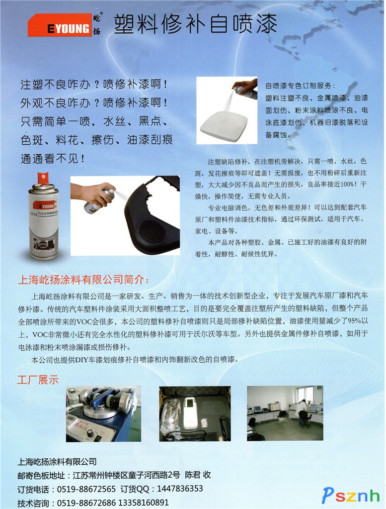 塑料_金屬涂料_塑料涂裝-上海屹揚(yáng)涂料有限公司點(diǎn)擊:820 查看原圖![]() ![]() ![]() 地址:江蘇省常州市三河口鎮(zhèn) 服務(wù)熱線:0519-88672686 88672565 傳真:0519-88672686