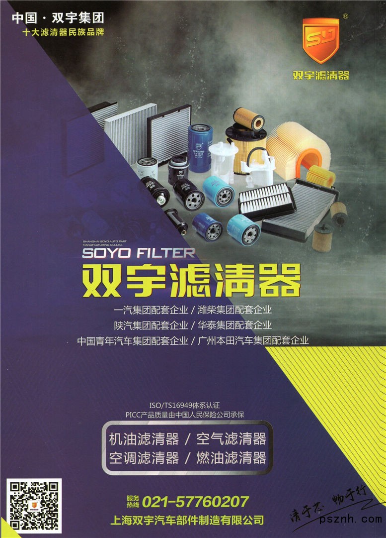 上海雙宇汽車部件制造有限公司 汽車濾清器 機(jī)油濾 汽油濾 空氣濾 空調(diào)濾點(diǎn)擊:770 查看原圖![]() ![]() ![]() 上海雙宇汽車部件制造有限公司