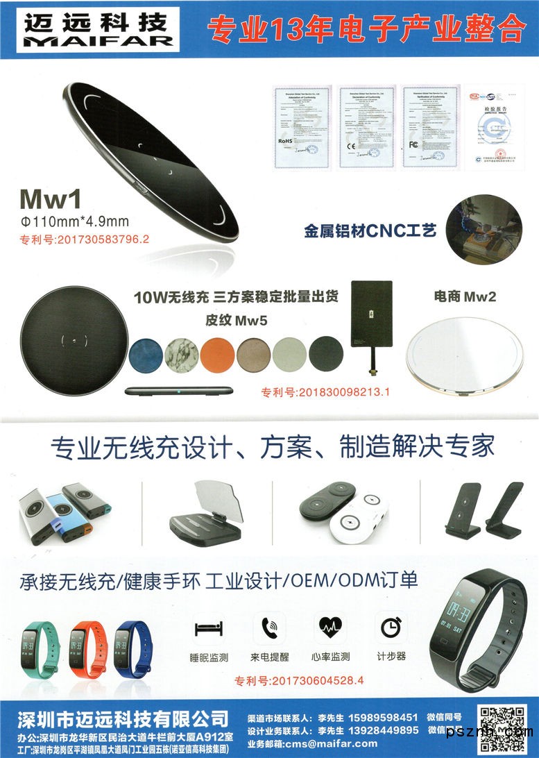 深圳市邁遠科技有限公司 無線充電器 智能健康手環(huán)點擊:647 查看原圖![]() ![]() ![]() 地址:深圳市龍華新區(qū)民治大道牛欄前大廈A912室