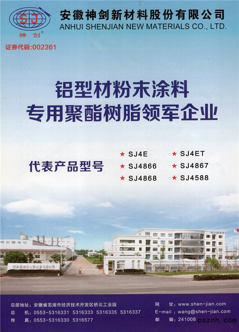 安徽神劍新材料股份有限公司 聚酯樹脂 粉末涂料點擊:749 查看原圖![]() ![]() ![]() 地址:蕪湖經(jīng)濟技術(shù)開發(fā)區(qū)橋北工業(yè)園保順路8號