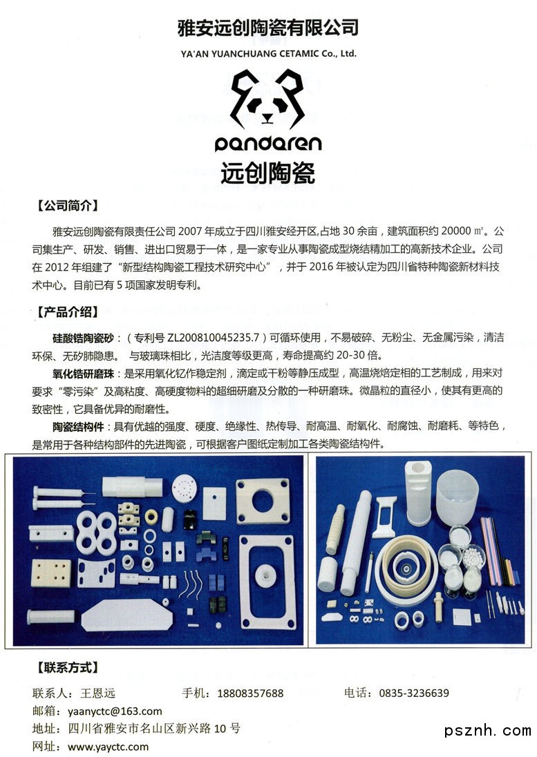 | 公司名稱: | 雅安遠創(chuàng)陶瓷有限責任公司 | ||