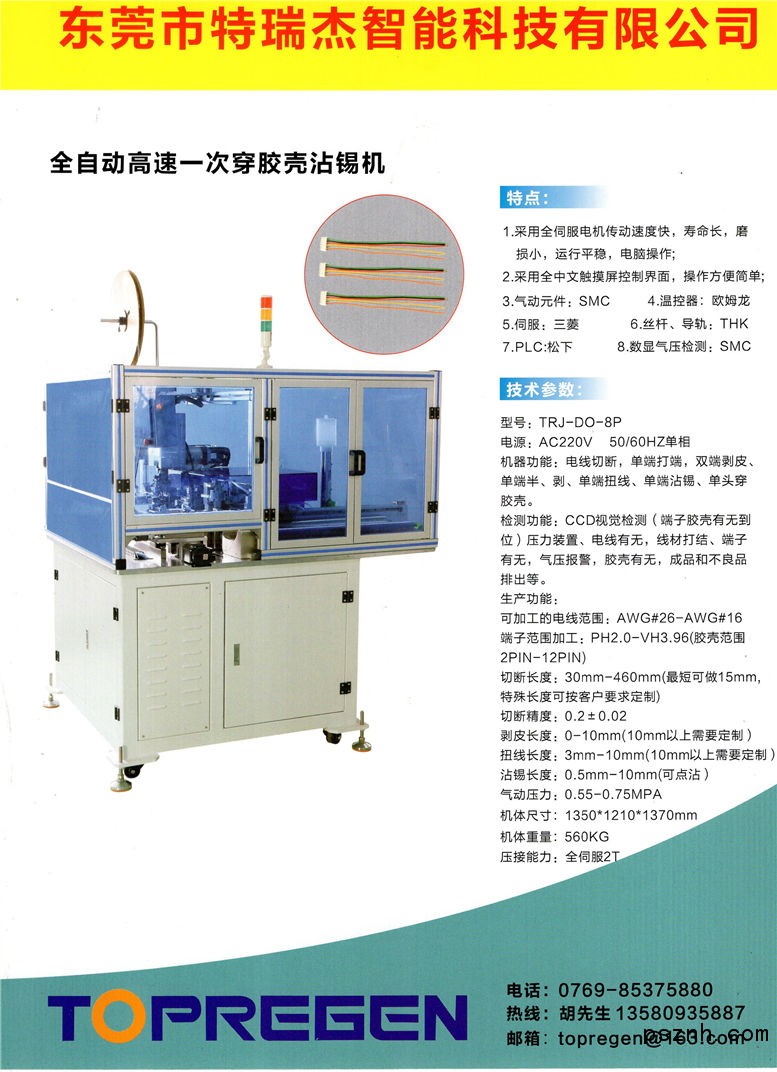東莞市特瑞杰智能科技有限公司 全自動單頭沾錫機、全自動排線端子機、全自動打端子穿膠殼機點擊:928 查看原圖![]() ![]() ![]() 客服電話:0769-85375880
