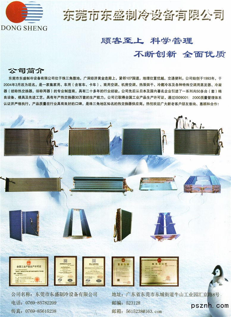 東莞市東盛制冷設(shè)備有限公司 冷凝器、蒸發(fā)器、銅管、鋁箔點(diǎn)擊:638 查看原圖![]() ![]() ![]() 公司名稱(chēng):東莞市東盛制冷設(shè)備有限公司