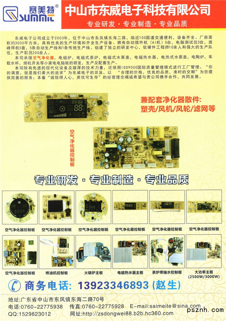 中山市東威電子科技有限公司 凈化器/新風(fēng)系統(tǒng),酸奶機(jī)/酵素機(jī),電陶爐點(diǎn)擊:544 查看原圖![]() ![]() ![]() 聯(lián)系人 : 趙汝升 先生 (法人) 給我留言