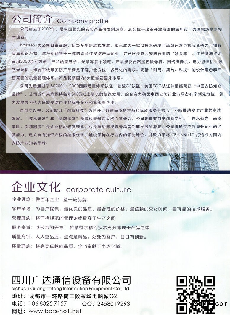 四川廣達通信設(shè)備有限公司 監(jiān)控設(shè)備; 網(wǎng)絡(luò)監(jiān)控器; BOSS NO1博視壹號監(jiān)控設(shè)備; 監(jiān)控攝像機點擊:691 查看原圖![]() ![]() ![]() |