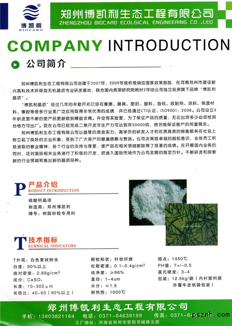 鄭州博凱利生態(tài)工程有限公司 硫酸鈣晶須_無水硫酸鈣晶須_半水硫酸鈣晶須點擊:388 查看原圖![]() ![]() ![]() 公司地址:
