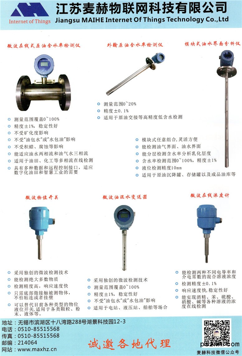 江蘇麥赫物聯網科技有限公司 在線式原油含水率檢測儀 在線式原油三相流綜合檢測儀 原油沉降罐界面智能分析系統點擊:1176 查看原圖![]() ![]() ![]() 地 址:無錫市十八灣路288號湖景科技園12號樓3單元