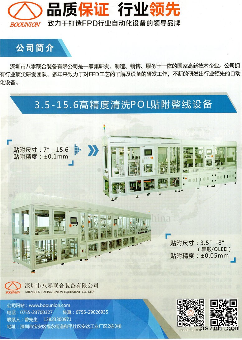 八零聯(lián)合裝備有限公司 研磨清洗機 液晶屏窄邊框封膠機 全自動OCA貼附機 全自動高速無痕偏光片貼附機點擊:816 查看原圖![]() ![]() ![]() 咨詢熱線:0755-23700327 聯(lián) 系 人:楊Sir