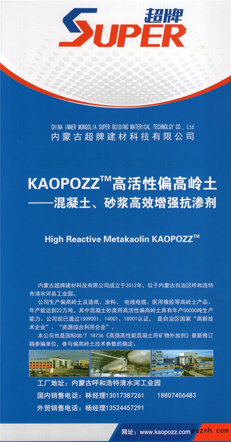 超牌建材科技有限公司 橡膠絲專用煅燒高嶺土 砂漿用偏高嶺土點擊:605 查看原圖![]() ![]() ![]() 電話:0474-3916699