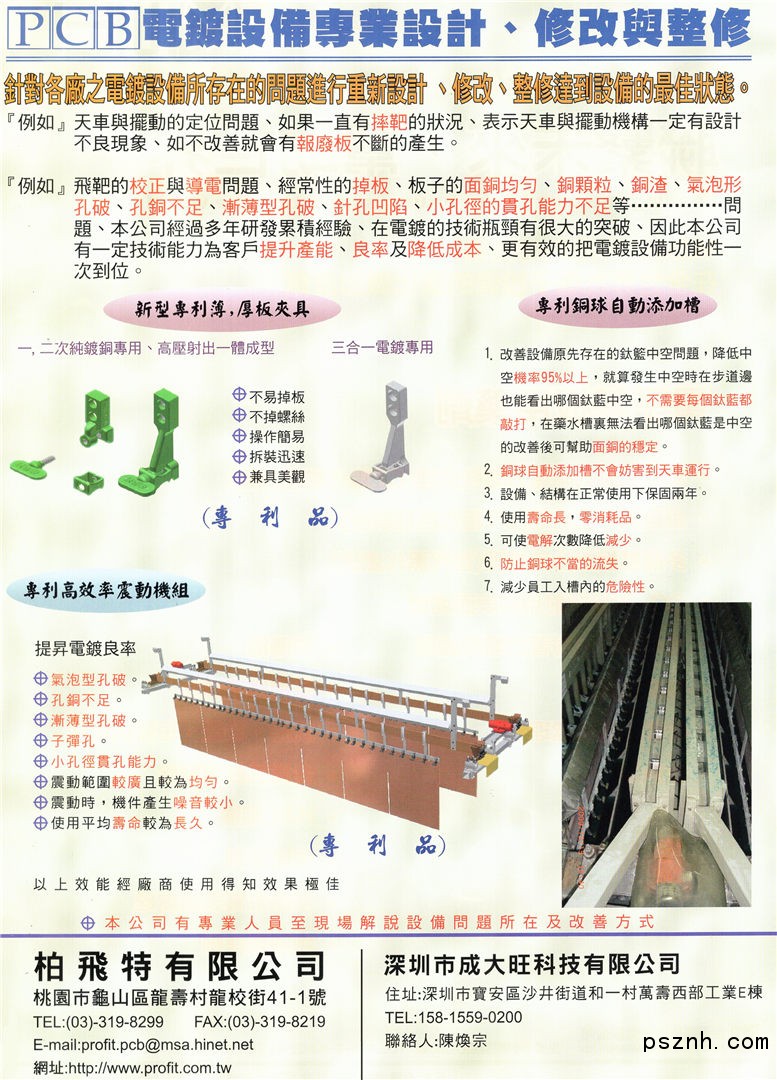 深圳市成大旺科技有限公司 專利浮床 電鍍線整修 專利半自動銅球添加盒點擊:700 查看原圖![]() ![]() ![]() 電 話:03-3198299 地址:桃縣龜山鄉(xiāng)龍壽村龍校街41-1號
