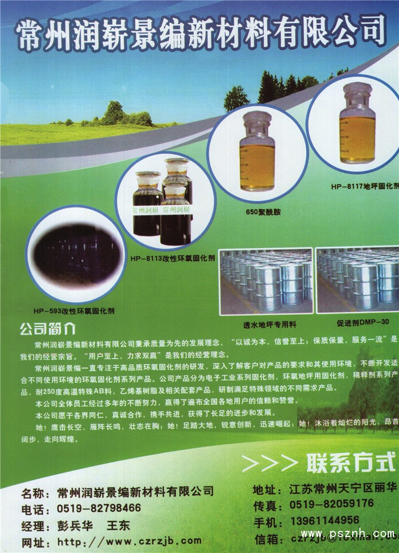 常州潤嶄景編新材料有限公司 固化劑 促進(jìn)劑 環(huán)氧稀釋劑點(diǎn)擊:634 查看原圖![]() ![]() ![]() 常州潤嶄景編新材料有限公司
