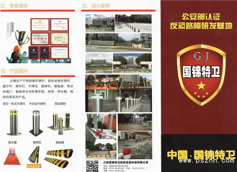 | 經(jīng)營范圍: | 交通安全、管制設(shè)備、路障、路樁、破胎器、升降柱、門禁系統(tǒng)的研發(fā)、制造和銷售;停車場管理系統(tǒng)、工業(yè)自動化控制系統(tǒng)裝置的研發(fā)、銷售;交通安全設(shè)施及器材、市政公用工程、環(huán)保工程設(shè)計、施工;安防設(shè)備、五金產(chǎn)品(除電動三輪車)、電子產(chǎn)品、金屬制品、塑料制品、配電柜銷售。(依法須經(jīng)批準的項目,經(jīng)相關(guān)部門批準后方可開展經(jīng)營活動) | ||