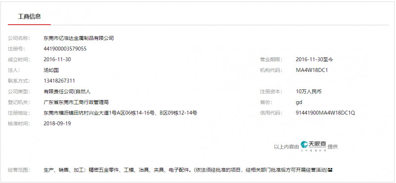 | 登記機(jī)關(guān): | 廣東省東莞市工商行政管理局 | 省份: | gd |