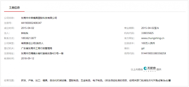 | 登記機(jī)關(guān): | 廣東省東莞市工商行政管理局 | 省份: | gd |
