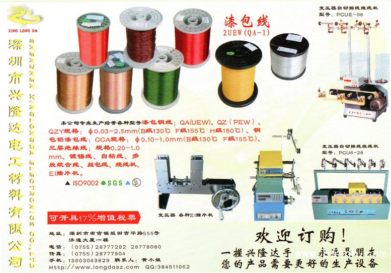 | 經(jīng)營(yíng)范圍: | 漆包線、繞線機(jī)、插片機(jī)、變壓器、電工材料的購銷及其它國(guó)內(nèi)商業(yè)、物資供銷業(yè)(不含專營(yíng)、???、專賣商品)。^ | ||