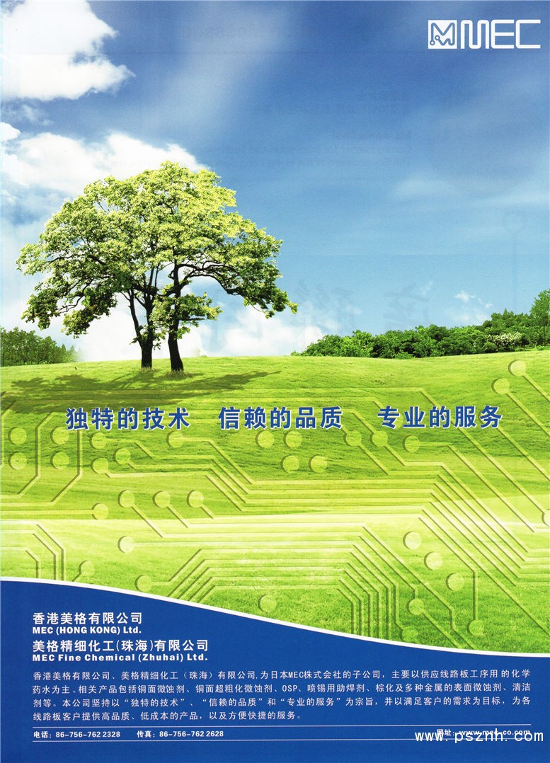 美格精細(xì)化工(珠海)有限公司 銅面微蝕劑_OSP_噴錫用助焊機(jī)劑點(diǎn)擊:869 查看原圖![]() ![]() ![]() 公司地址: