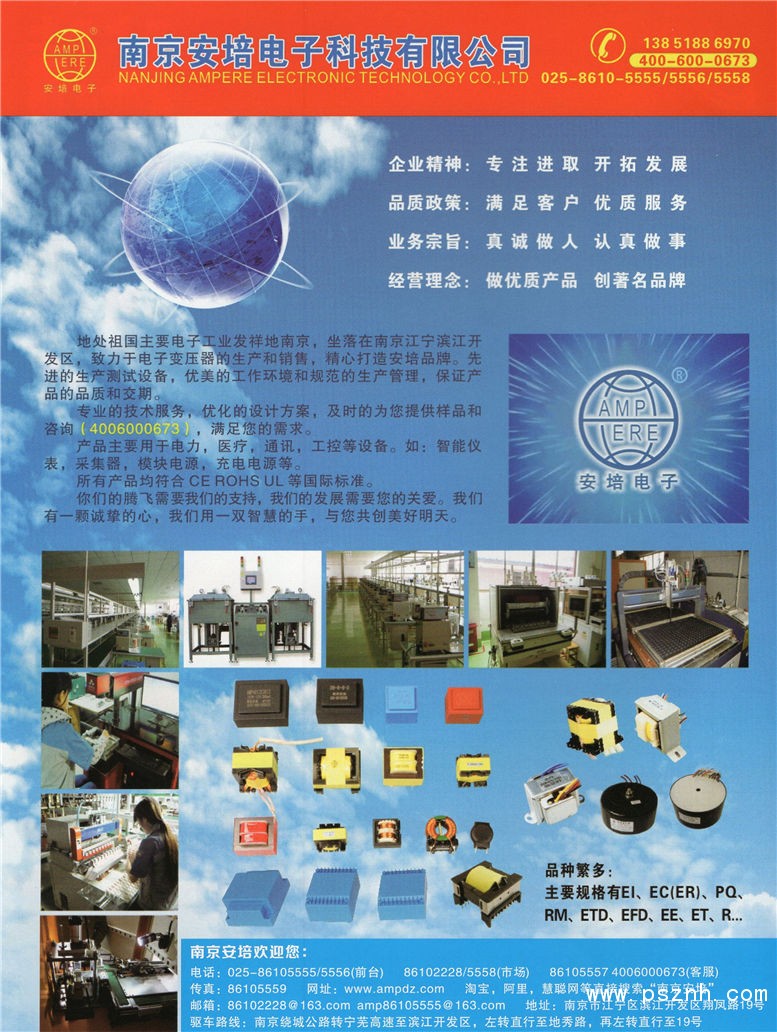 南京安培電子科技有限公司 電能表專用灌封變壓器 低頻電子變壓器 高頻電子變壓器 工遙控器用變壓器點擊:712 查看原圖![]() ![]() ![]() 電 話:86 025 86102228/86105555/86105556