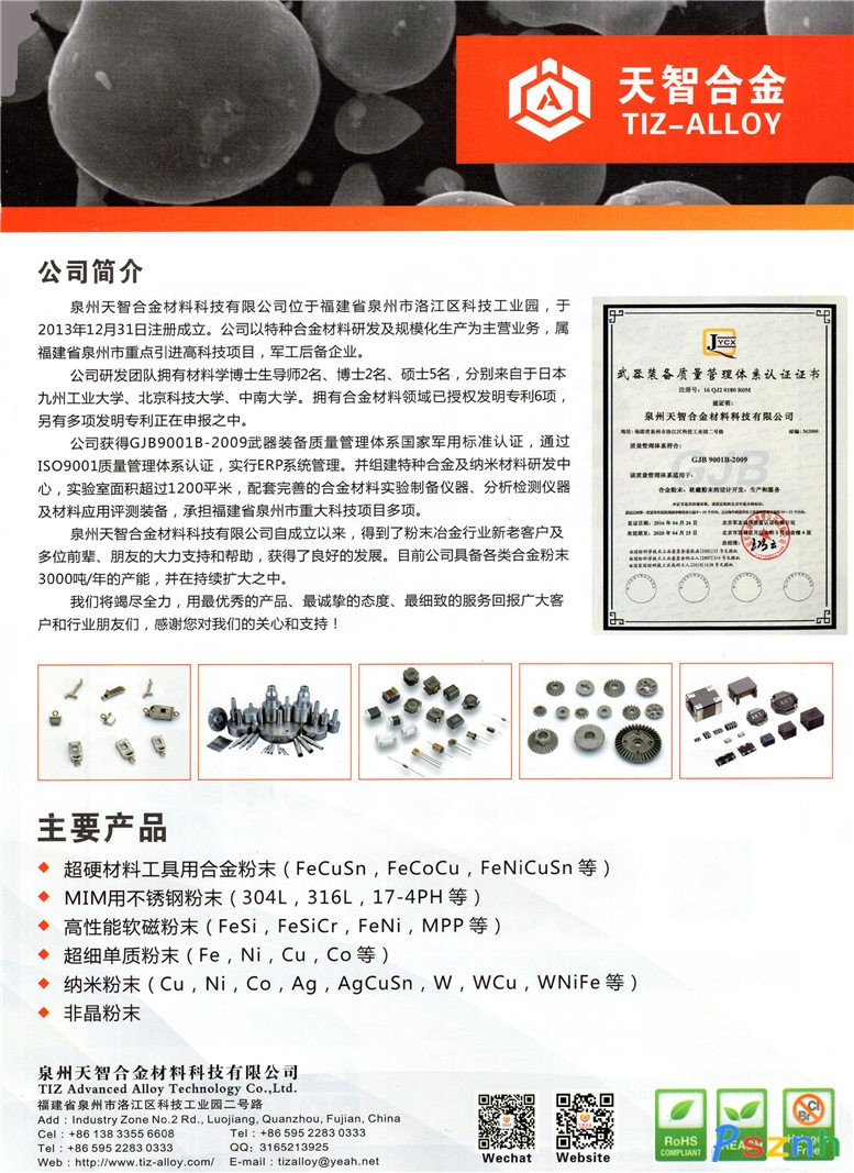 | 公司名稱: | 泉州天智合金材料科技有限公司 | ||